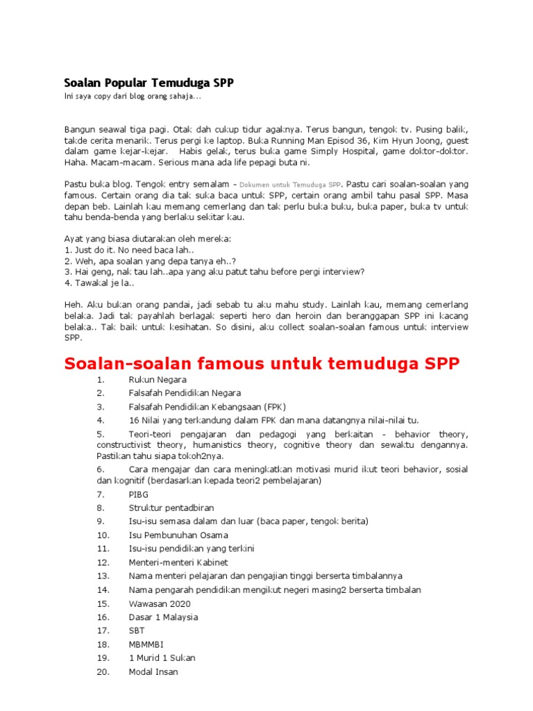 Soalan Popular Temuduga Spp Pdf