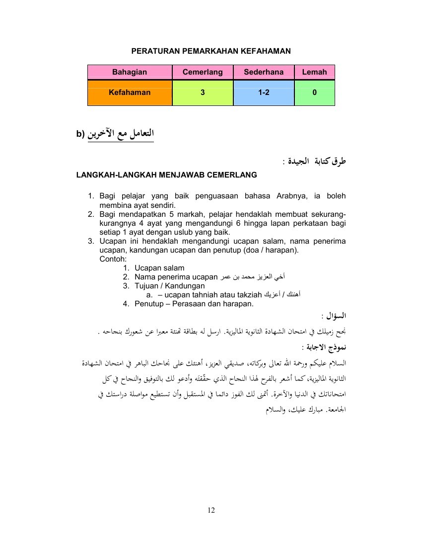 Panduan dan Contoh Karangan Bahasa Arab Menengah Atas. Bahasa Melayu BM Sejarah Matematik Bahasa Inggeris Fizik Kimia Matematik Tambahan Biologi Prinsip Perakaunan Sains Pendidikan Islam Pendidikan Moral. Koleksi Soalan Peperiksaan SPM Bahasa Arab adalah antara himpunan soalan-soalan yang berjaya kami sediakan untuk menjadi panduan dan rujukan kepada guru ibubapa dan pelajar.